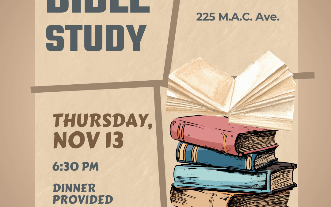 November 13, 6:30pm Join us this Thursday for our weekly gathering. We’ll start with dinner and then move into a Bible study.