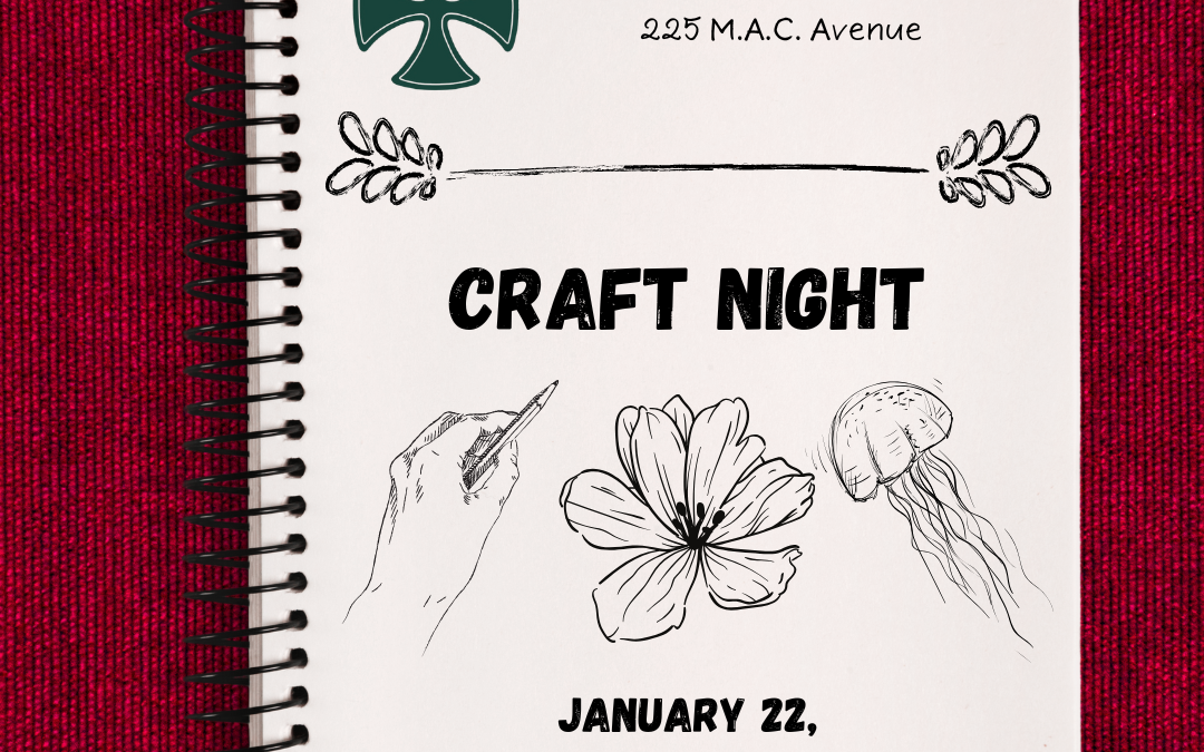 January 22, 6:30pm. Join us for crafting! We’ll start with dinner and then move into a time of crafts. We’ll have supplies but feel free to bring you own as well.